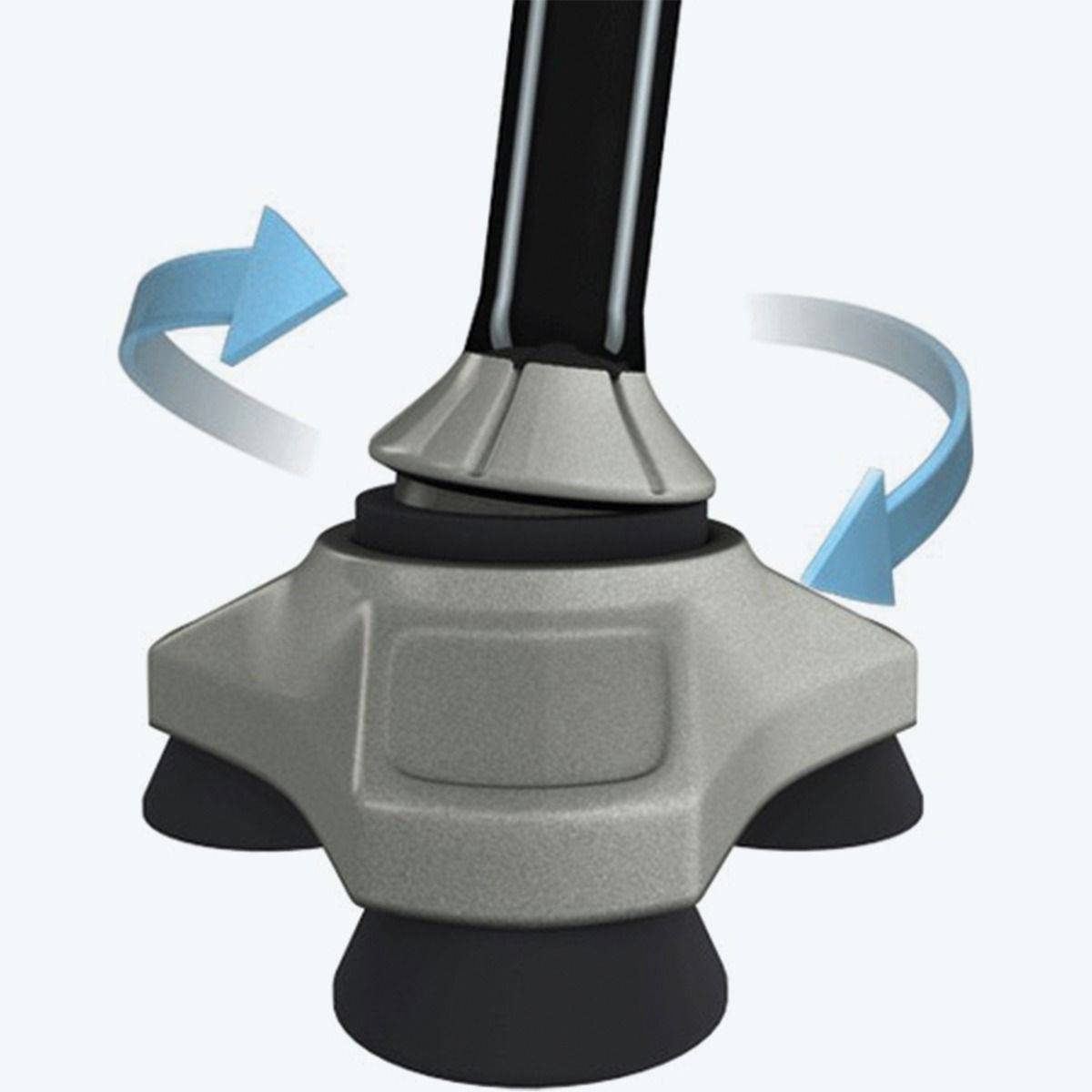 Chez Fécamp Matériel Médical ce que l'on préfère s'est sa base pivotante à 360°, avec ses 3 points de contact la canne hurrycannepliante assure votre stabilité quelque soit l'angle et la qualité du terrain. Le petit plus, elle tient debout toute seule.