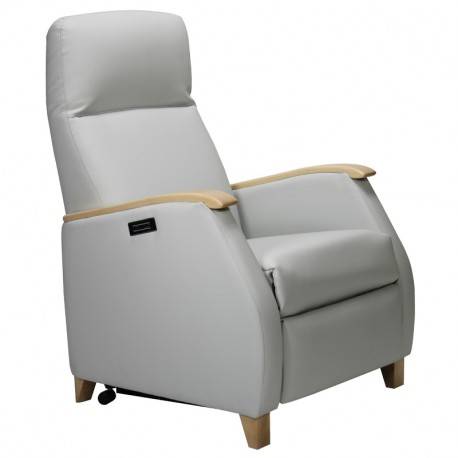 Le fauteuil releveur Acomodo Milo repose sur des pieds en bois massif pour offrir un support stable et est équipé d'un repose-pieds et d'un dossier inclinable grâce à une commande électrique située directement dans l'accoudoir du fauteuil.